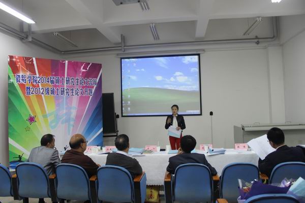 参加答辩的毕业生经过论文开题、中期考核、论文审查、盲审等阶段的精心准备,在答辩的过程中以图文并茂的形式,结合PPT,有的放矢、条理清晰,对自己论文的选题目的、理论框架、研究问题的方法及实际意义进行了阐述。主辩老师针对论文的主要内容进行了提问。有的毕业生结合论文特色,在答辩的过程中带来了舞蹈道具向各位老师和同学进行展演,从形象和感官上对自己的论文进行了阐释。答辩结束后,2012级的论文开题报告会继续进行,共有5位同学参加。