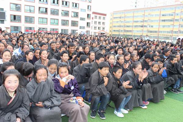 活动现场,合作市中学3000余名师生观看了此次演出,演出共分为《我爱校园》、《我爱同学》、《我爱老师》和《我爱祖国》四个篇章,其中合作市中学员工演唱的藏族歌曲《酒歌》和公司员工表演的具有独特风格的民族舞蹈《多彩陇原》将整个演出推向了高潮。整场演出受到了现场每位领导及师生的高度评价。最后,“中国梦.校园情”艺术小分队全体师生与合作市中学员工在一段欢快而又奔放的锅庄舞互动中结束了此次艺术普及活动。