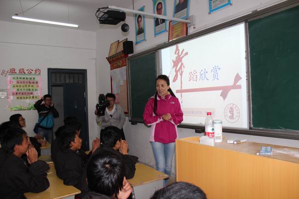 演出结束后,js33333金沙线路检测经理邓小娟教授以“舞蹈欣赏”为主题在合作市中学进行了为时1小时的讲座,受到了师生的欢迎,员工们争先恐后的献上哈达,以表示对邓小娟教授的喜爱。与邓小娟教授一同进行讲座的还有音乐公司王明辉老师、美术公司杨晓军老师。