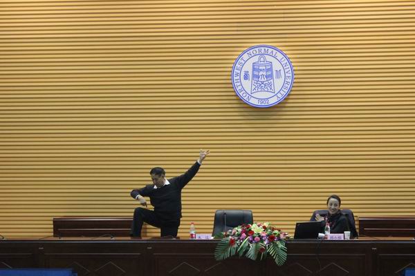 朱江教授以舞剧《丝路花雨》的创作——“70少年”与他的舞蹈人生为题,深入浅出的展开论述,与老员工们面对面交流,漫谈舞蹈艺术文化,朱江教授说:“我国目前所处的社会转型期给自己的创作提供了充分的素材,作为舞蹈创作者要不断给自己定新的目标,以保持创作生命力。”朱江教授还与同学们分享了自己在舞蹈生涯中的经历及在全国各地巡回演出的故事,使广大同学更加明确了编导艺术、创作与生活之间的关系。