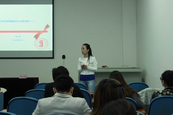 课上,邓经理首先以生态文明时代,非物质文化遗产名目为例,引导学员们思考在田野调查中应当做好的入手关键和案头工作;其次结合陇东礼俗等实际案例,对舞蹈生态学及其核心概念进行了分层解释与剖析,提出生态性的民族舞蹈价值观,最后通过展示民俗舞蹈的活态样式,对民族民间舞蹈数据库的填报进行了深入解读。
