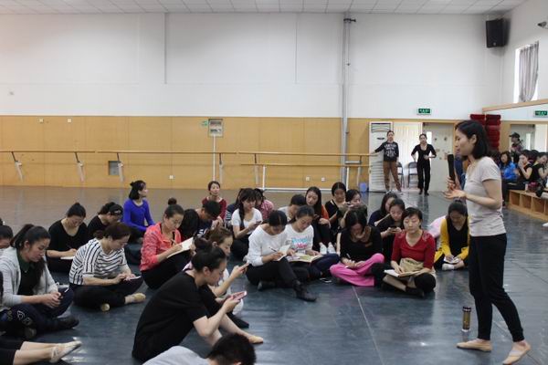 课程开始之前,张老师首先介绍了本次实践课带给学员的全部内容分为三个板块:1、结合音乐开发身体教学;2、结合戏曲开发身体教学;3、初级身体开发教学,而上午第一节实践课主要进行两个主题实践课的教学,分别是天声舞才和1+2+3项目,介绍完本次授课的主要内容,张老师带领学员进行了热身活动,目的在于与学员建立关系,缓和紧张的上课气氛。然后张老师进入了本次课程的第一个主题实践项目天声舞才的授课,此项目一共有8个小活动板块构成:1、手部热身,称为“跟我做”,以围圈的形式,当A做一个动作,其他人都学会的当下,向身旁的B交出设计动作的主导权,依次进行;2、一人发声,例如A发声,B用手部动作诠释A的声音,依次进行;3、A发声,身旁的B用全身的肢体动作来诠释A的声音,依次进行;4、A发声,BCDE依次用放大夸张的动作方式来诠释A的声音,注意点是不能脱离B原有动作的基础构架;5、4人一组,由其中一人做固定音型的发音,其余三人依次加入,形成和谐的和声;6、利用由上述一条形成的和声组给下一组进行伴奏,第二组队员对应第一组的顺序,依次即兴用身体动作来表现所听到的声音;7、4人或者8人一组,利用自己发出的声音带动自身肢体的即兴发挥舞蹈动作;8、称为“我们的乐队”,4人一组,要求必须出现以下四种声音:鼓点声、弦乐声、唱词声、奇怪的声,然后给小组取一个炫酷的乐队名,最后设计一个别开生面的出场秀。在这个项目的教学中,学员们对“我们的乐队”这个活动小板块尤其感兴趣,大家都热情高涨绞尽脑汁给自己的乐队取一个酷炫的名字,真可谓是“八仙过海,各显神通”,有“猫王乐队”、“美着呢乐队”、“屯里人乐队”、“疯狂动物城乐队”等。 然后进入第二板块1+2+3课程,此项目共有6个小活动板块组成:1、站立围圈的方式,A做全身动作,其余人模仿,依次进行;2、动作接龙;3、每人编创一个八拍的舞蹈动作,进行展示,并由员工选出4个最喜欢的舞蹈动作;4、给员工选出的4个舞蹈动作进行标记,按照数字1234,一一对应,然后通过口诀自由组合舞蹈动作出现的先后顺序;5、编创环节,形成8个八拍的舞蹈动作组合;6、让员工自己选择喜欢的背景音乐,进行舞蹈组合的展示。学员的参与度很高,大家逐渐放开自己的肢体,每一组都展示了不同风格的舞蹈。