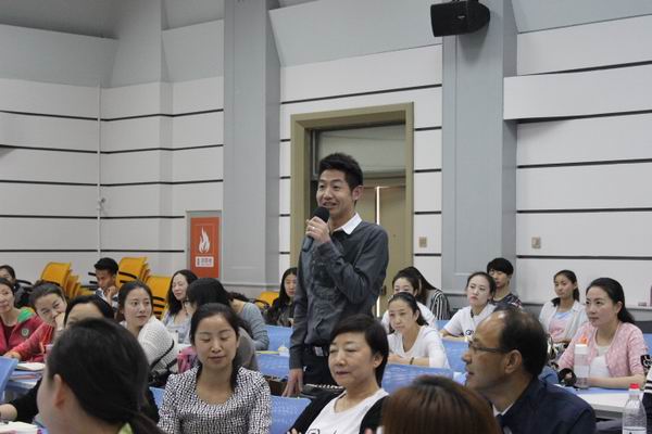 在报告会上,朱江老师通过中国民俗文化的背景和自身常年累积的舞蹈经验详细地讲解了回族民间舞的历史来源、在全国的地位、动作要领和舞蹈特色,并通过在现场的言传身教,在舞院师生们面前亲自演示,再现了回族民间舞的风姿和魅力,感动了在座的每一个人。其间朱江老师以1957年的回族民间舞作品《花儿与少年》为例,通过五方面的阐述,清晰地说明了回族民间舞最原始的起源,分别是:1、将回族民间舞呈现在大众面前;2、规范了回族民间舞的雏形,包括动律、手型手位、步伐,如碎摇头、双背手、屈伸步和上山步;3、大胆运用了回族特有的音乐“花儿”;4、初步确定回族舞蹈的服饰;5、首次步入国家级的艺术殿堂,奠定了回族民间舞在中国民族民间舞界的地位。回族民间舞具有独特的韵律和舞姿,能和当时流行的蒙古族舞和藏族舞相媲美,因此在当时该舞蹈一经推出风靡了全国各地。接着朱江老师从四个时间段梳理了回族民间舞从形成到发展壮大的历史脉络:1、1949-1957年,回族民间舞的形成期;2、1958-1979年,回族民间舞挖掘、整理、继承和发展的时期;3、1980-2000年,回族民间舞发展壮大期;4、2000年-至今,回族民间舞繁荣收获期。朱江老师特别指出的是,由于社会的改革开放,外来思潮和文化影响了舞蹈编导的教学和编创的手法,使得一些编导通过互相学习大胆地运用了混搭的手法,编创出回族民间舞一系列的精品作品,比如《心泉》、《山野小曲》、舞剧《月上贺兰》等。