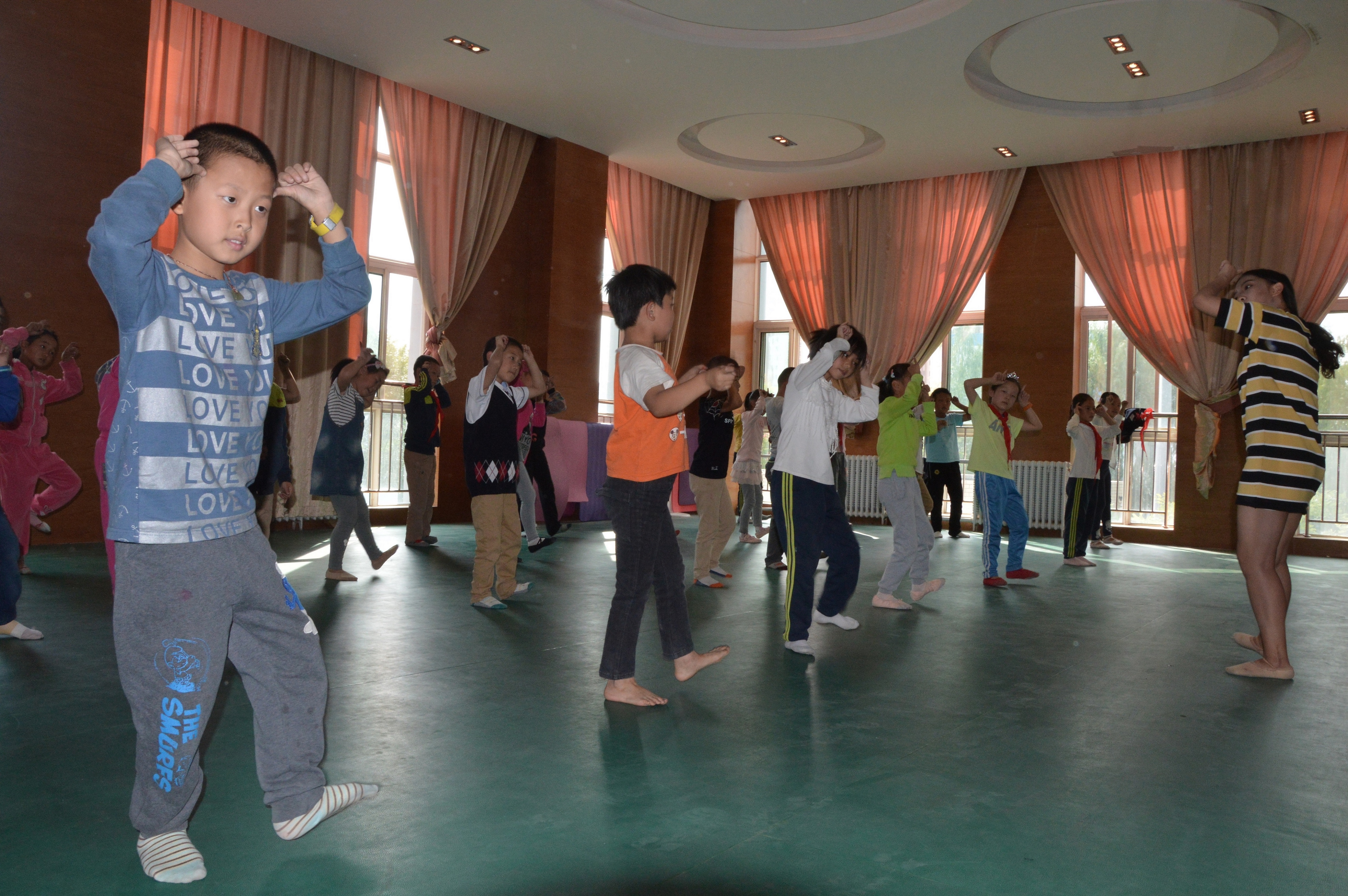 甘肃省中小学素质教育舞蹈课程进校园课程,针对长风小学二年级员工开展《猜属相》课程的延展性课程第三课时,在前两个星期教师通过引导教学的教学方式让员工发挥丰富的想象力,模仿生肖的动作和形象特征,课堂气氛轻松活跃。
