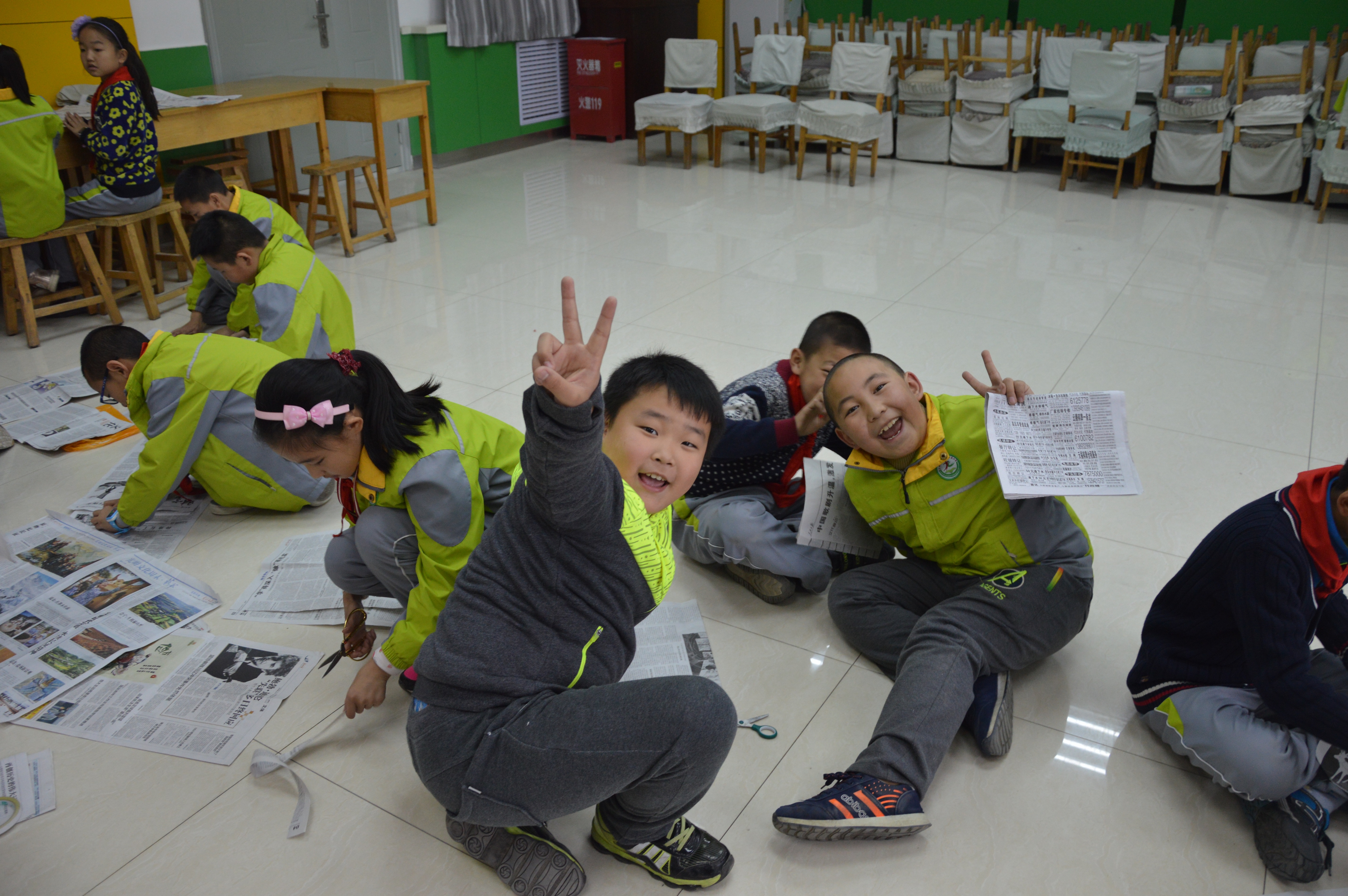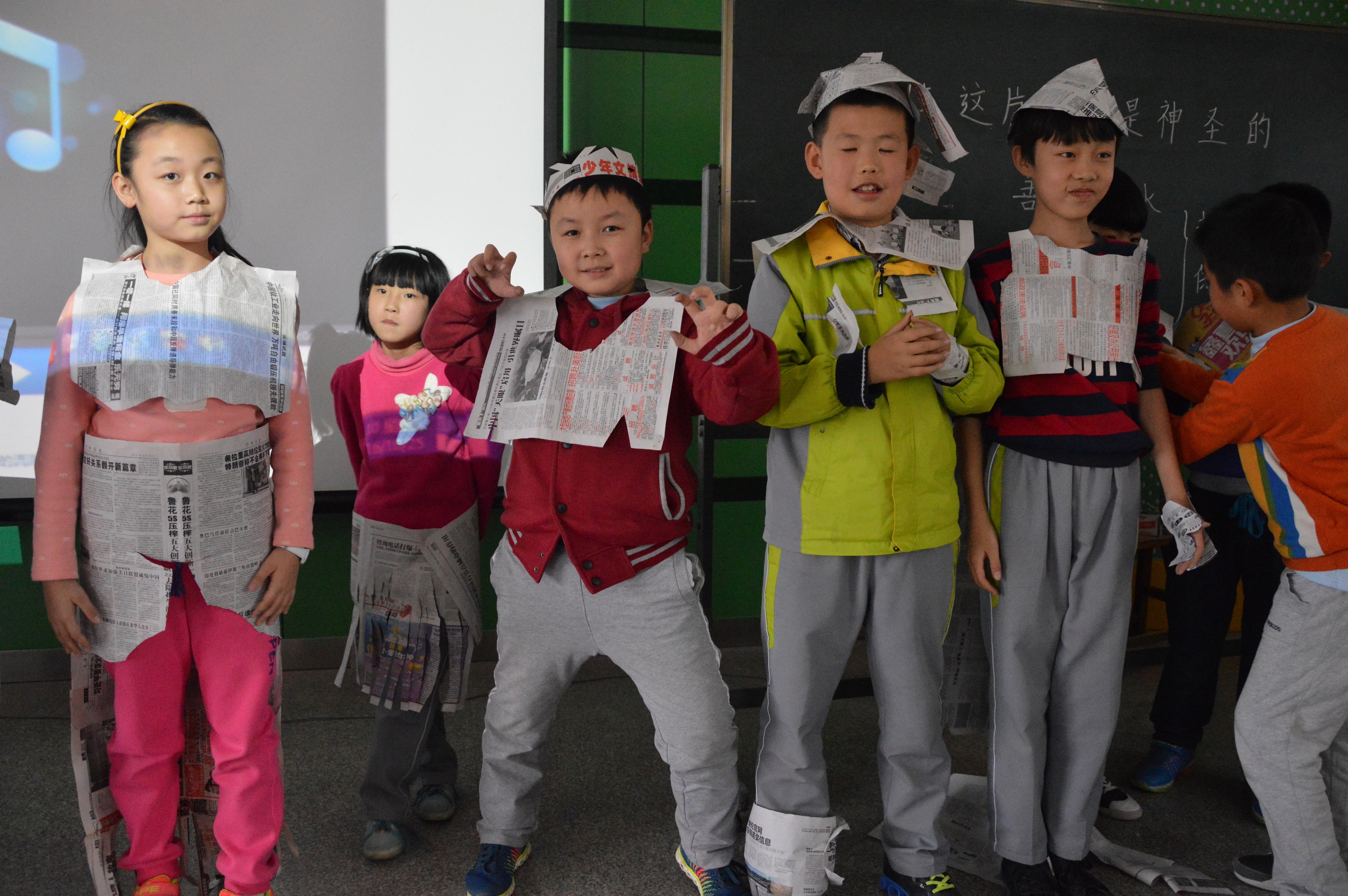 四年级5班于浩说:“看我做的变形金刚服装,汇报表演的时候我就可以穿着我自己做的衣服给爸爸妈妈表演舞蹈了,我很开心。”
