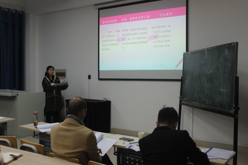 11月18日下午2:30,在公司105教室举行了2015级研究生中期考核。六位研究生依次进行了自己的报告总结,缑静以“兰州职业技术公司学前教育专业舞蹈课程的现状和反思”为题,开篇立论。接下来,王艺蓉开展了关于“天水武山县旋鼓舞的表演形态与文化传承”研究的报告。随后是闫可欣的东乡族民间舞蹈的艺术风格及特征;孙志强的甘肃政法公司舞蹈艺术教育的理论探索与实践研究;刘怡的甘肃省宕昌县中小学舞蹈普及教育现状调研及思考;张佳丽的浅谈酒泉地蹦子的表演形态。