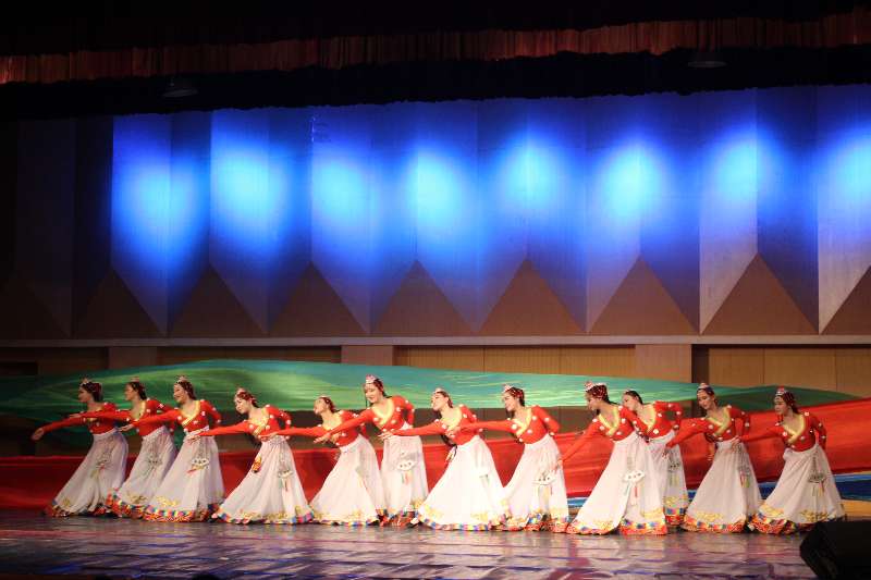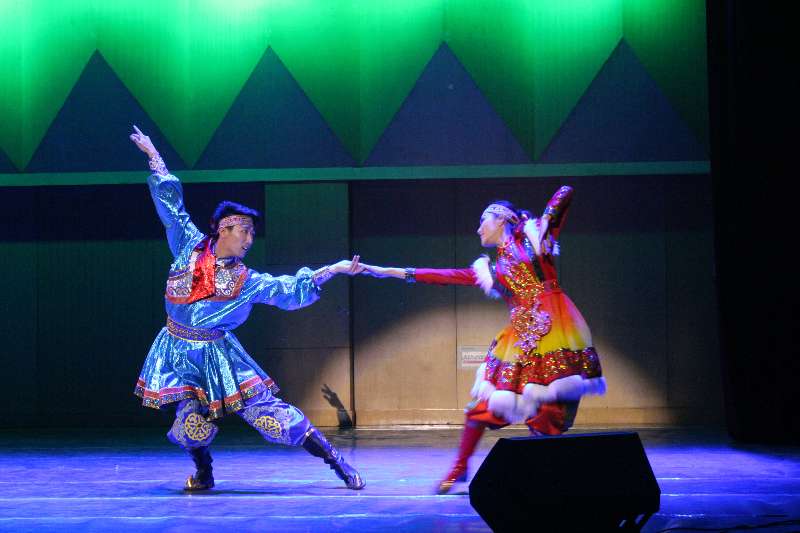 第二部分:西北边塞多风情,五彩氆氇藏人勤。马背雪山蒙家儿,远走他乡游子吟。裕固姑娘喜迎宾,领高人俏帽有缨。惟愿这一方热土,常有欢庆事事新。