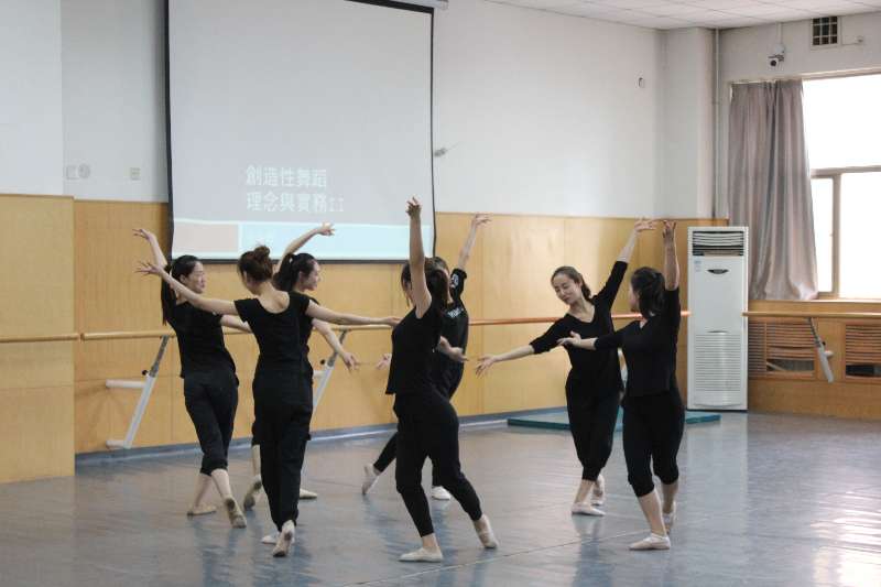 随后,她向大家介绍了拉邦动作分析,如何经由肢体与空间、时间、动力的关系,并且将它带入到舞蹈教学、评论、创作、表演以及每日生活动作的改善。张中煖老师选取了一首我们最熟悉的儿歌《我有一头小毛驴》作为创作的基点,刚开始在节拍当中运用词语作出动作停顿来感受节拍与舞蹈的关系,随后逐渐的增添创编的难度,分成4人一组,将儿歌重新创新,最后将每一组所创编的情景给它带入不同的舞蹈动作,在大家的齐心努力下,张中煖老师与同学们一同完成了一次非常有趣且有意义的舞蹈创作。
