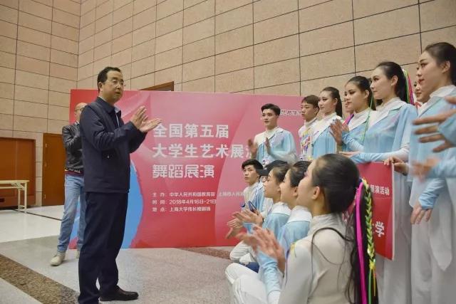 甘肃省教育厅副厅长王光亚、js33333金沙线路检测团委副书记杨庆、公司副经理马军、舞蹈表演系主任钱文以及青年教师李秀加、王丹等老师亲赴现场观看了演出并在演出结束后看望公司参演师生,对所有参演师生的辛勤付出表示感谢!