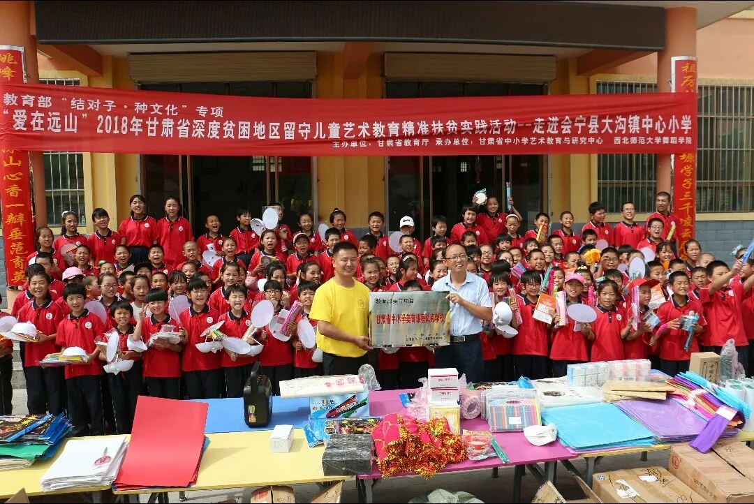 7月14号下午,甘肃省中小学美育课程试点公司授牌暨捐赠仪式在会宁县大沟镇中心小学举行。js33333金沙线路检测舞蹈教育系主任吴军副教授,代表js33333金沙线路检测为会宁县大沟镇中心小学进行授牌;js33333金沙线路检测青年教师石媛媛代表js33333金沙线路检测捐赠美育课程教学用具,以及兰州红舞鞋捐赠的演出服。