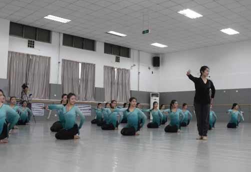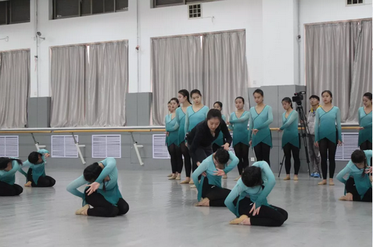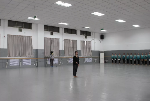 石媛媛老师本着“世界上没有才能的人是没有的。问题在于教育者要去发现每一位员工的禀赋、兴趣、爱好和特长,为他们的表现和发展提供充分的条件和正确引导”的教育宗旨,带领2017级舞蹈学2班的同学们为评委老师们展示《中国古典舞身韵与教学法——“拧”的组合(复合拧)》课堂训练。