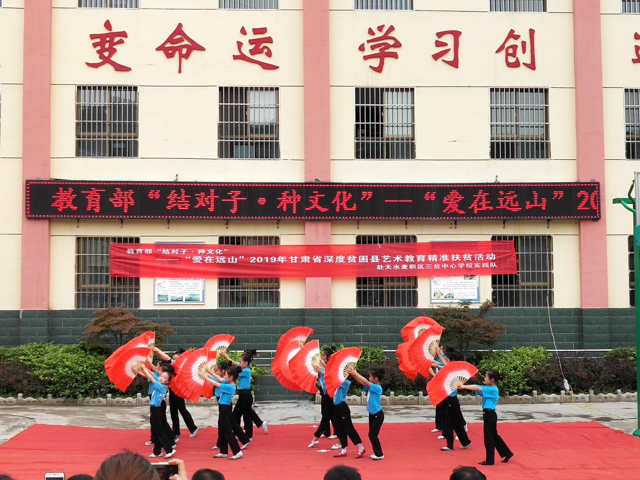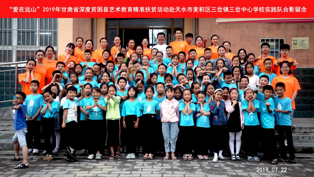 7月13日至22日,为深入贯彻国务院办公厅《关于全面加强和改进公司美育工作的意见》精神,js33333金沙线路检测在教育部体卫艺司、甘肃省教育厅的支持下,依托艺术教育资源优势,整合舞蹈、音乐、美术、传媒、教育等专业特色,组建了一支由教师、研究生、本科生等23人构成的“爱在远山”艺术教育精准扶贫小分队,来到天水市麦积区三岔中心公司,积极投身艺术教育,努力完成工作任务并且用心普及艺术教育,汇聚爱的力量,播撒美的种子。