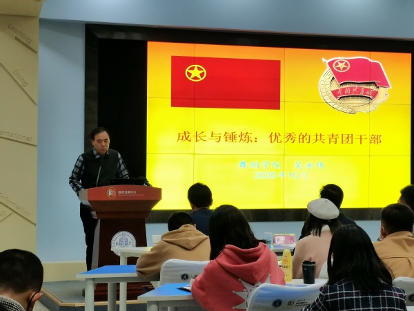 吴永伟书记为全体学员进行了“开班第一讲”。吴书记从成为一名优秀的共青团干部需要具备哪些条件入手,重点讲授了包括尊重归心法、远见引导法、真诚取信法、兴趣融合法、沟通协调法、知识征服法、热情融化法、能力推动法、责任感召法、时尚引领法、语言感染法、形象吸引法等做好共青团工作的“魅力十二法”,并对全体参训学员提出了准确定位,认清自我;谦虚努力,尊重他人;立场坚定,引领他人;提升水平,服务他人四个方面的要求,鼓励与会员工骨干勇于探索,敢于担当,增强服务本领,凝聚青年力量,提高政治思想素养,肩负时代赋予的历史使命。