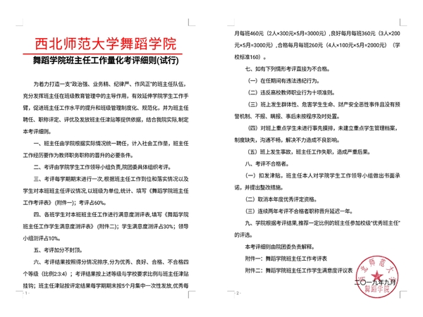 为着力打造“政治强、业务精、纪律严、作风正”的班主任队伍,充分发挥班主任在班级教育管理中的主导作用,有效延伸公司工作手臂,促进班主任工作水平的提升和班级管理制度化、规范化,充分调动班主任工作的积极性,公司开展班主任量化考核工作,考核过程采取公平公正的原则,合理考核班主任工作情况。