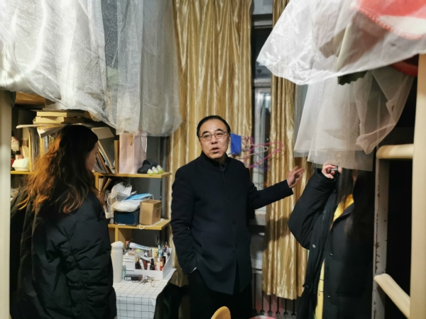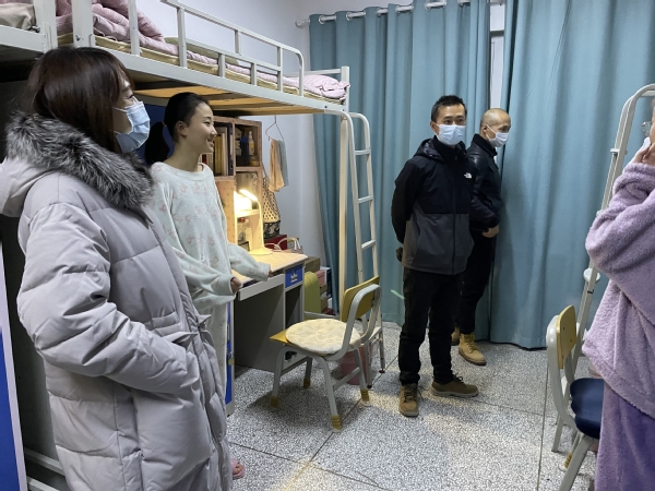 在召开班会的基础上,12月13日,公司统一组织,通过集体走访宿舍的方式跟员工零距离接触,做到了走访宿舍全覆盖,谈心谈话无遗漏。公司吴永伟书记、王玉丰副书记带队,专职辅导员、各班班主任和部分员工干部随队走访检查本科员工宿舍;由马军副经理、何佳苡副经理带领硕士生导师及敦煌班班主任对研究生宿舍和敦煌班宿舍进行走访检查。教育员工要自觉自律、相互监督、相互提醒,自觉加强宿舍的日常安全排查,及时排除安全隐患,提高警惕,远离网络贷、套路贷、校园贷、裸贷、电信诈骗,做好期末备考等工作,建立文明温馨和谐的宿舍关系。