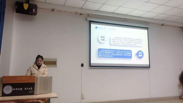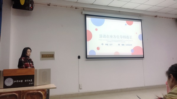 九位学术型硕士研究生与一位专业型硕士研究生依次进行了自己的汇报,在汇报中有的放矢、条理清晰,对自己论文的选题目的、理论框架、研究问题的方法及实际意义进行了阐述。以不同的研究方向和角度,不同的风格向大家汇报了这一年多来在导师的指导下的钻研成果。