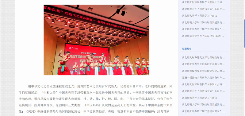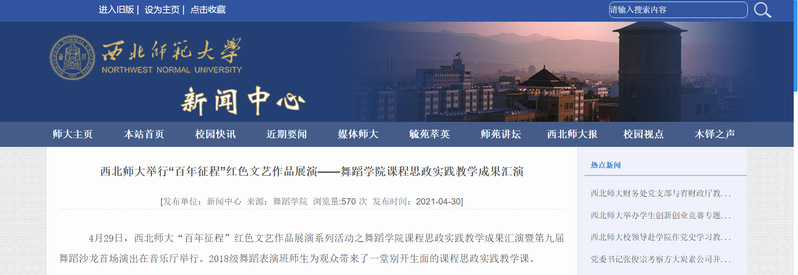 西北师大举行“百年征程”红色文艺作品展演——js33333金沙线路检测课程思政实践教学成果汇演