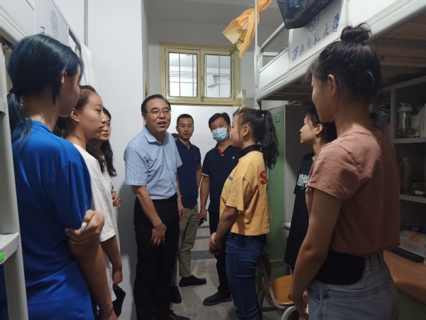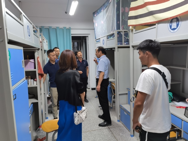 新学期伊始,为了解js33333金沙线路检测员工在校的住宿条件和生活状况,给同学们创造一个良好的宿舍环境,9月13日晚上,公司党总支书记吴永伟,经理马军,副书记王玉丰,副经理何佳苡、吴军以及各班班主任、辅导员对新生宿舍进行走访。