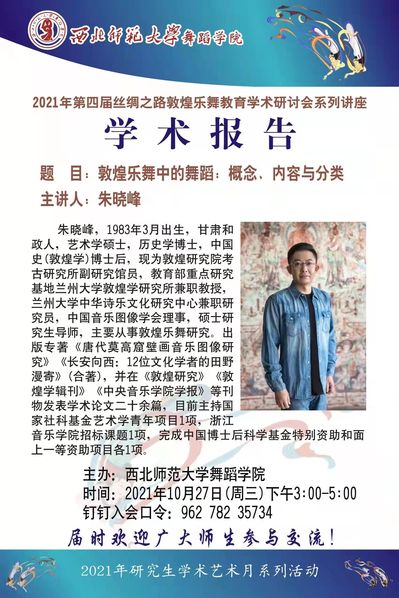js33333金沙线路检测 2021年第四届丝绸之路敦煌乐舞教育学术研讨会系列讲座暨2021年研究生学术艺术月系列活动于10月27日下午3:00在线上(钉钉APP)举行。