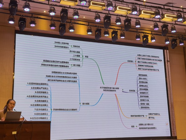 报告中,马乔恩结合自己的学习体会,以思维导图的方式从整体上讲解了十九届六中全会公报及《决议》的主要内容,总结了党的百年奋斗的历史经验和重大成就,“从党的百年奋斗中看清楚过去我们为什么能够成功、弄明白未来我们怎样才能继续成功”,列举了十九届六中全会新论断、新表述,全面解读了党的十九届六中全会精神的丰富内涵与精髓要义,同时以推动构建人类命运共同体为切入点,讲清楚了“人类命运共同体”的原创性、历史性、延展性、重要性。