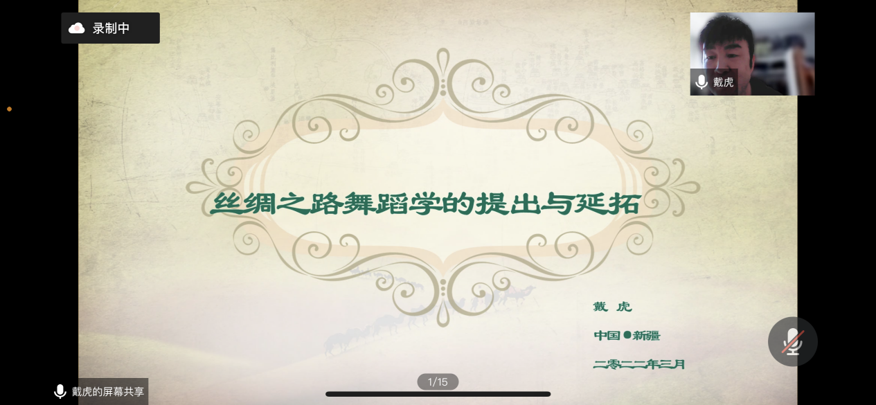 2022年3月24日下午15:00,js33333金沙线路检测百廿校庆系列学术活动第一场于线上(腾讯会议APP)举行,本次参加会议的公司老师、研究生以及本科生近两百人次。新疆师范大学音乐公司教授、硕士研究生导师、中国艺术研究院舞蹈学博士戴虎教授作了“丝绸之路舞蹈学的提出与延拓”专题讲座。本场讲座由js33333金沙线路检测吴军副经理主持。