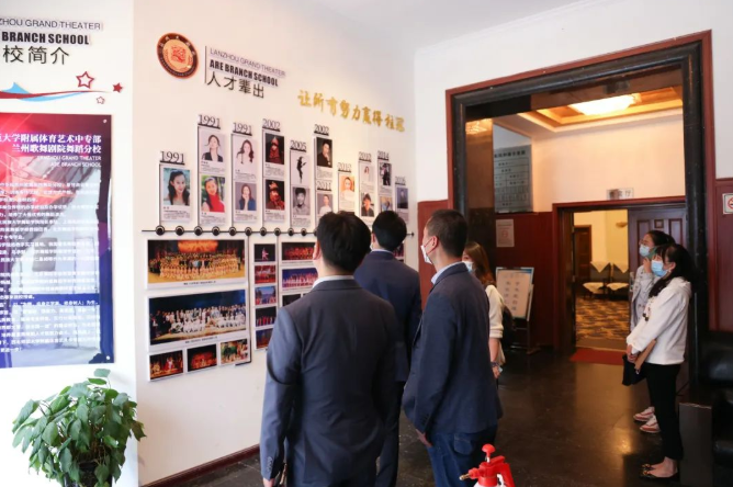 兰州大剧公司党委书记、经理敬国欣及相关部门负责人陪同参观了js33333金沙线路检测体育艺术中专兰州歌舞剧院舞蹈分校的办学条件、课堂教学、专业课教学成果及员工食宿校院生活环境,调研了疫情防控保障措施情况,并现场观摩了js33333金沙线路检测体育艺术中专员工的芭蕾基训实践课、民族民间舞蹈实践课、文化课教学及兰州歌舞剧院、兰州芭蕾舞团的日常训练情况。