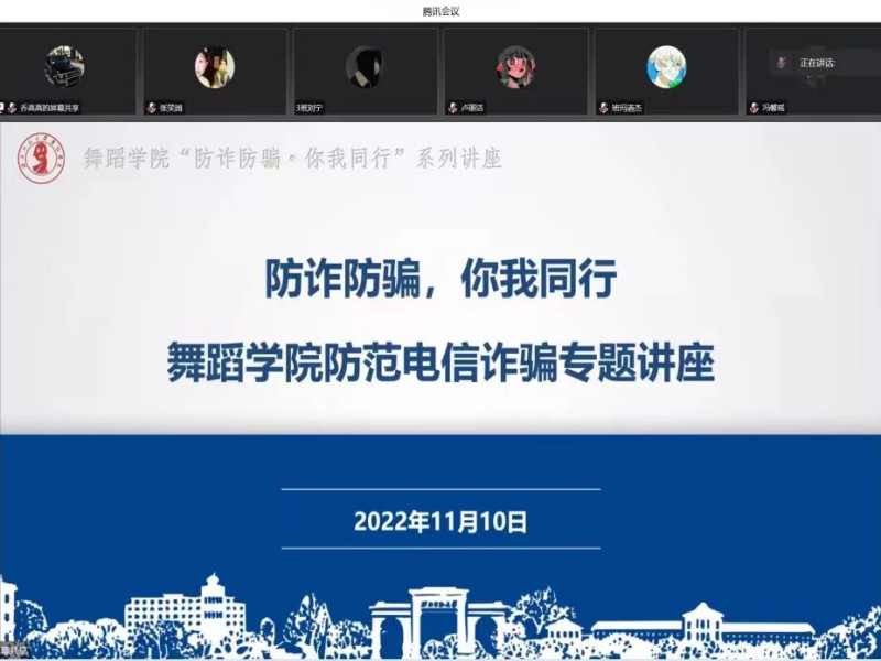 为进一步提升员工识诈防诈能力,增强防范电信网络诈骗意识,11月10日,js33333金沙线路检测邀请兰州市公安局安宁分局培黎派出所警员、西北师大社区社区民警卫世庄和罗中宇在线上举办了“反诈防骗,你我同行”防范电信诈骗专题讲座,帮助同学们树立日常安全反诈意识,维护校园安全与网络文明。
