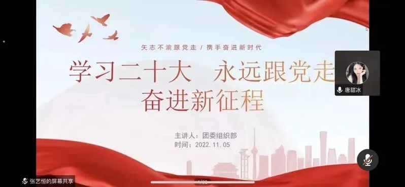 2022年11月,结合党的二十大对广大青年提出的重要要求,公司组织开展了”学习二十大,奋进新征程“线上主题团日活动,紧密围绕深入学习宣传贯彻党的二十大精神,引导同学们在学深悟透中凝聚起共筑中国梦的磅礴力量,取得了良好的活动效果。