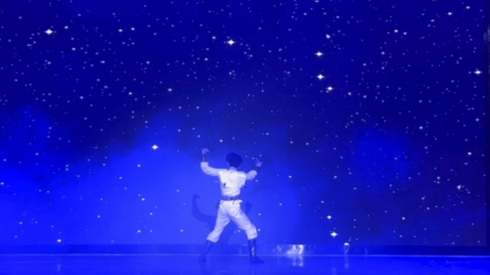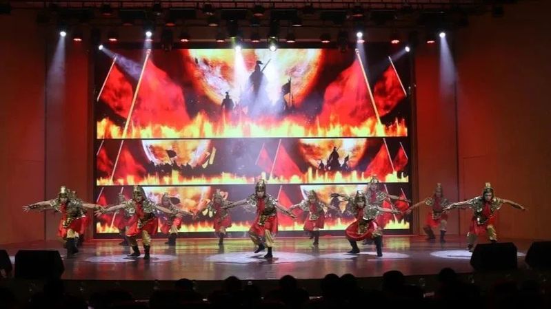 群舞《遥远的路》讲述的是一群部落勇士,在举部迁移的路途中不畏艰险,为部落探路而付出生命的故事。年轻的勇士正如改革开放四十年的建设过程中,我党无数前赴后继、不惜牺牲自我的探索者,他们不忘初心、牢记使命,砥砺前行。