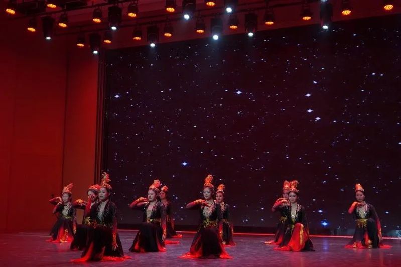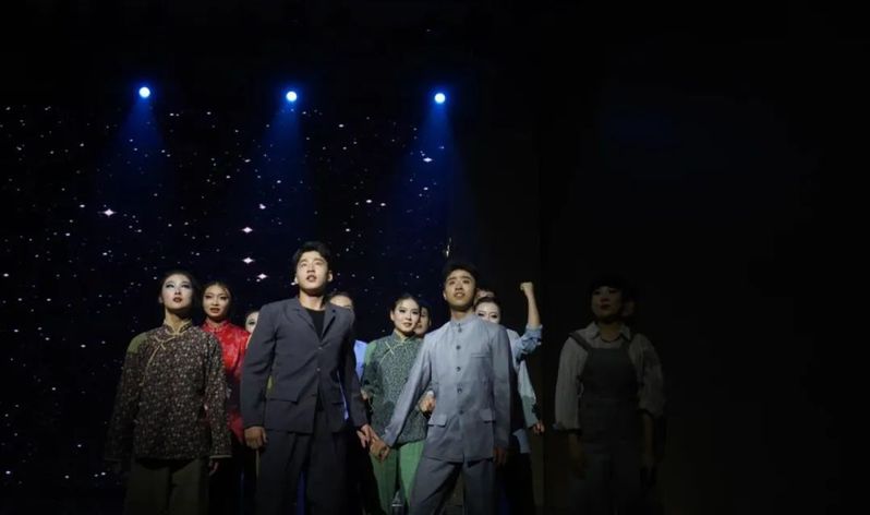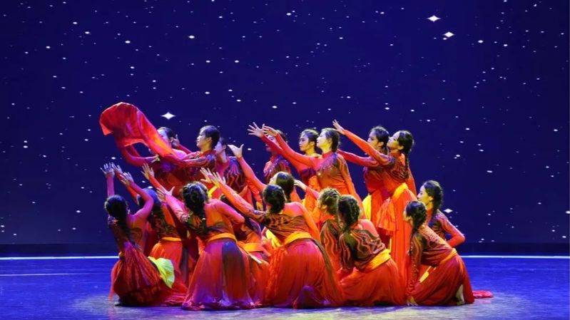 长河落日圆下归荑萋萋,飘然星星之火,即成燎原之势。女子群舞《星星之火》营造了一场精妙绝伦的视觉盛宴,热烈赞颂了革命先辈们的伟大红色精神。