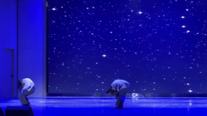在梦中生机盎然的草原和奔腾的马群使青年重新找回了童年的梦想,男子群舞《雁飞 忆·梦·归》表现对传统⽂化之洞⻅、对思乡精神之追求,珍惜当下之呼吁,塑造了⼀个蒙古族游子的形象,体现对文化自信的坚定。