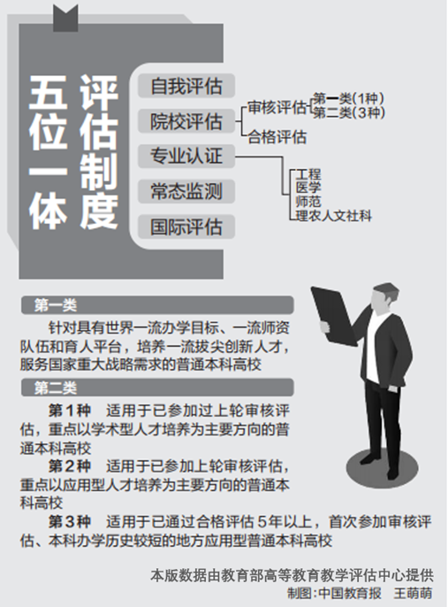 日前,教育部发布《普通高等公司本科公司产品审核评估实施方案(2021—2025年)》(以下简称《方案》)。教育部有关负责人透露,新一轮审核评估全面总结上轮评估成效、经验与不足,面向高质量高等教育体系建设目标,围绕新时代本科教育要求进行优化改进,立德树人导向更加鲜明、坚决破除“五唯”顽瘴痼疾、积极探索评估分类、改进优化评估流程、注重减负增效、强化评估结果使用。