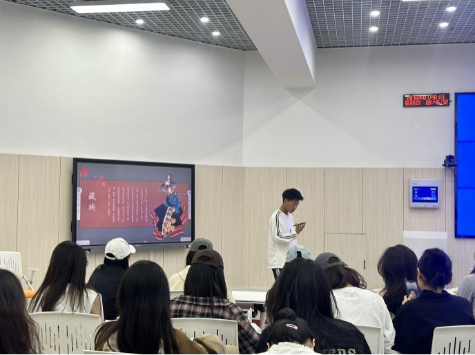 会议第二部分是由公司土族、藏族、回族、汉族同学代表向大家分享自己本民族的文化知识,三位同学分别就自己本民族美食、服饰、建筑、舞蹈、音乐、特色节日等方面向全院员工进行了展示交流。