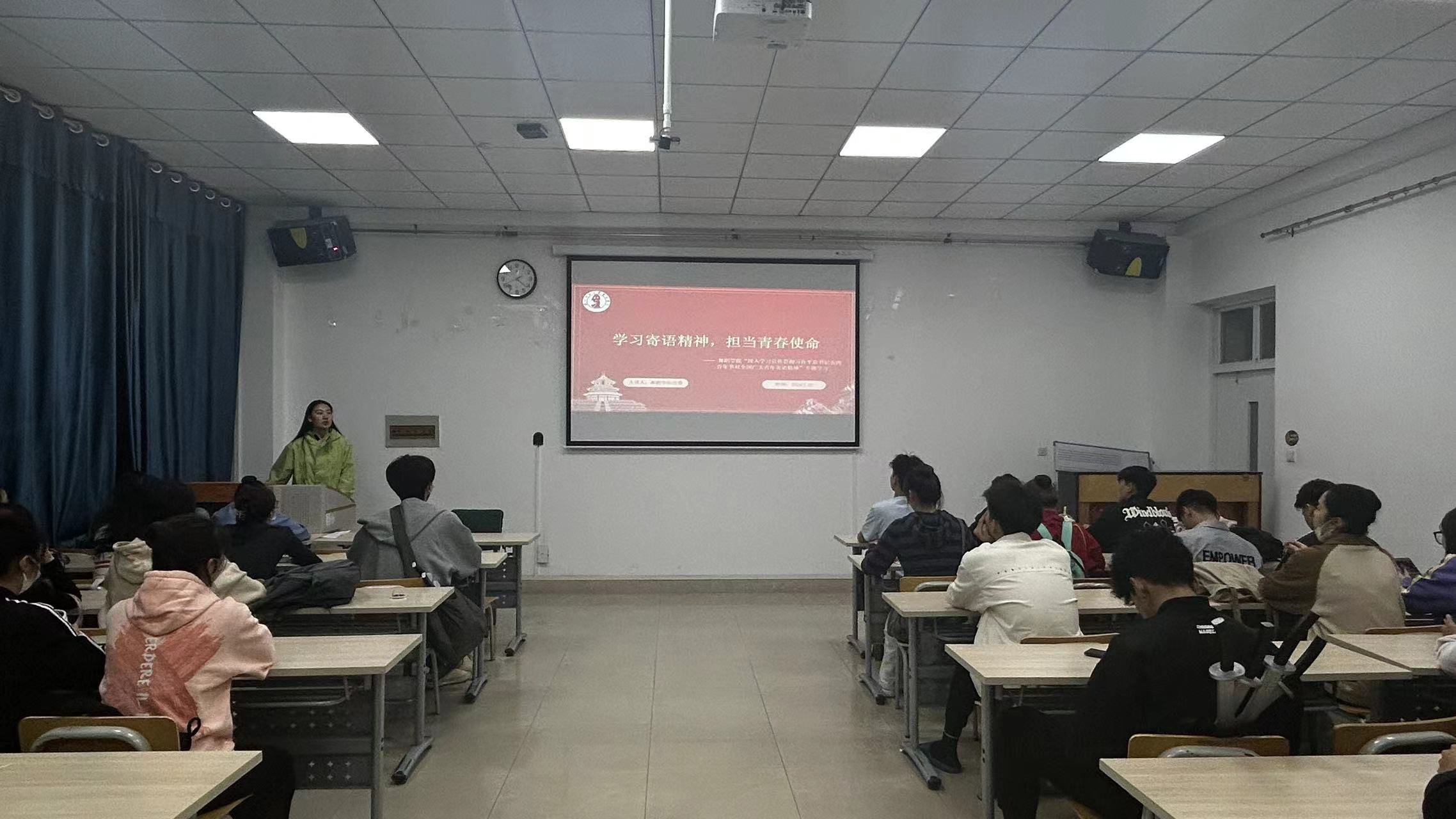 活动过程中,主持人分别从高扬爱国主义旗帜、弘扬科学精神以及发扬永久奋斗传统三方面出发,与同学们逐字逐句学习寄语精神,从不同角度阐明青年该如何继承和发扬五四精神,引导同学们热爱祖国,敢于创新、勇于创新、善于创新、永久奋斗,以理想信念指引人生方向。