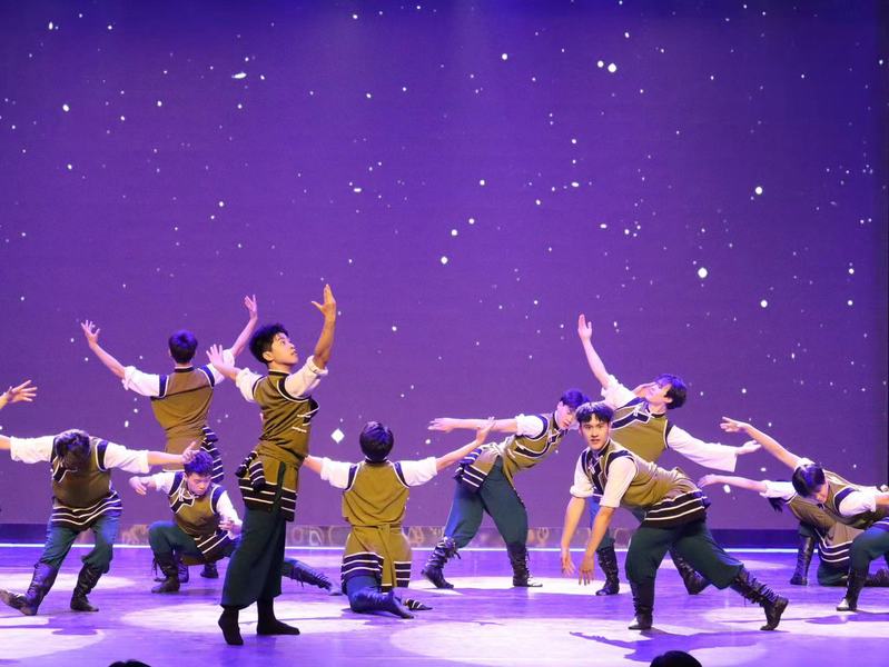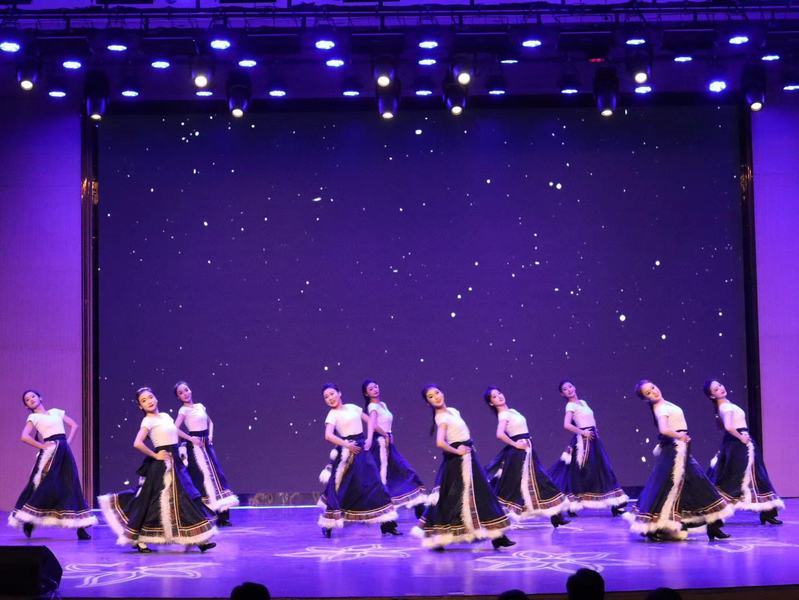 舞台上,同学们表演的民族民间舞技巧充满着生命的活力,举手投足间的民族韵味,展现出了舞者内心澎湃的感情,现场观众纷纷鼓掌,赞叹不已。
