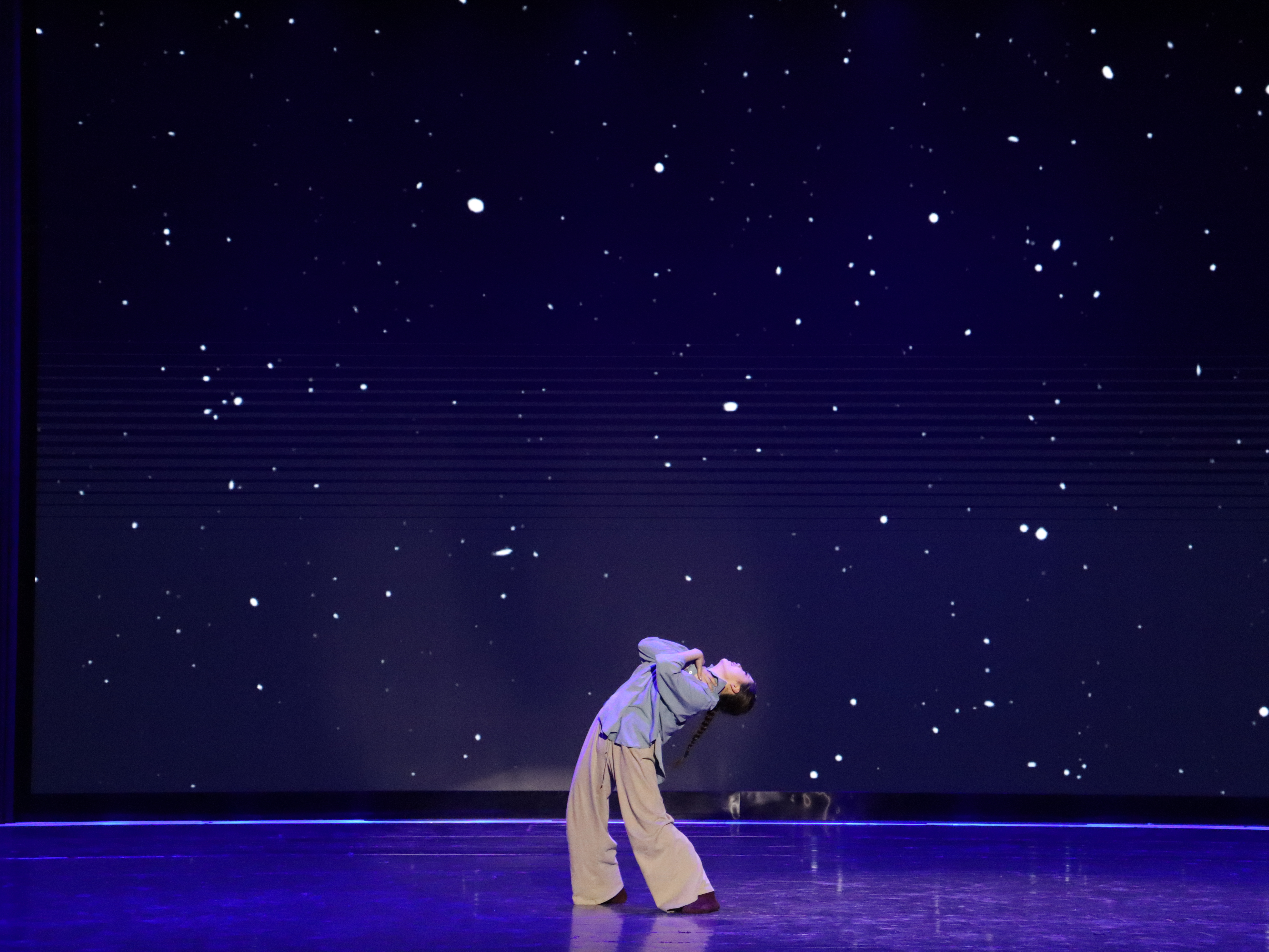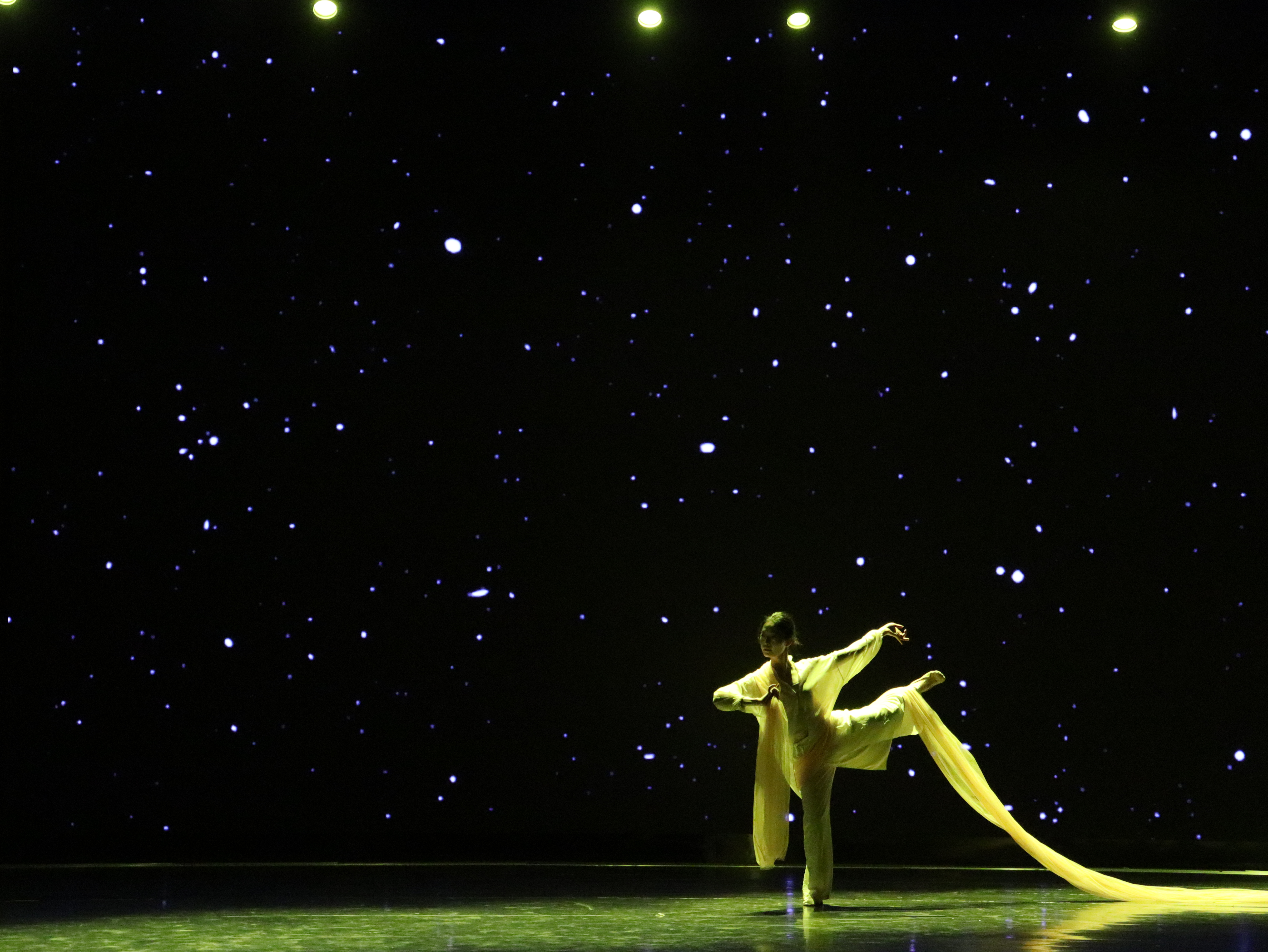 《风起了》,静谧的空间,有声有色的肢体语言灵魂的脚步没有停留的片刻,仿若流星闪闪飘忽而过。一切的美生于舞者脚下,随风而动的梦幻旋律,犹如绿色的诗韵,流荡于天外山水之间。