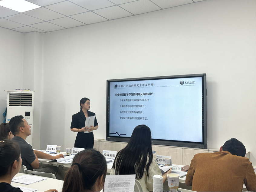 本次共有18名硕士研究生进行汇报,其中专业型硕士7名,学术型硕士11名。研究生们分别就毕业设计(论文)进展情况、学业课程完成情况、论文发表与科研参与情况、实践情况及下一步研究计划等内容做详细汇报。专业型硕士采取教学实践、编创作品展示以及答辩方式进行,依次进行15分钟的说课与教学(作品)展示。每位研究生结合不同教学(作品)主题认真准备了展示内容,向评审专家展示了各自的成果。学术型硕士依次进行8分钟的陈述汇报。其中包括在校两年以来的学习成果、论文进度以及后期需要修改的问题及解决办法。各位答辩委员会专家以认真的治学态度对论文以及课堂展示按照严格标准进行审核,对每位研究生存在的问题提出宝贵的修改意见。
