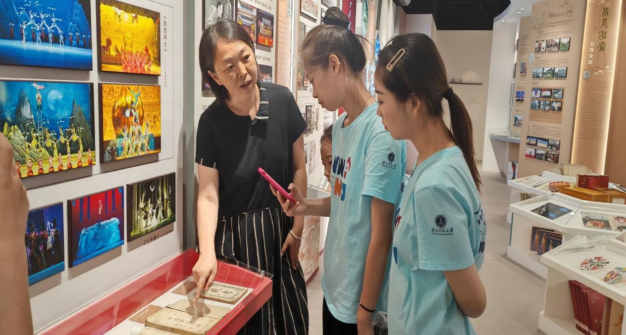7月16日上午,实践团首站在甘肃省博物馆起航。在讲解员的生动讲解下,甘肃丝绸之路文明展厅、甘肃彩陶展厅一一展现在眼前。这些文物仿佛在诉说着古代丝绸之路上舞蹈文化的辉煌与神秘。随后,甘肃省博物馆研究部主任李永平谈到了文物研究的重要性,并解答了同学们在论文写作中的一些困惑。副主任茹实介绍了她近期的研究成果,以及乐舞史论研究的基本方法,为成员们后续的学习提供了方法论的指导。