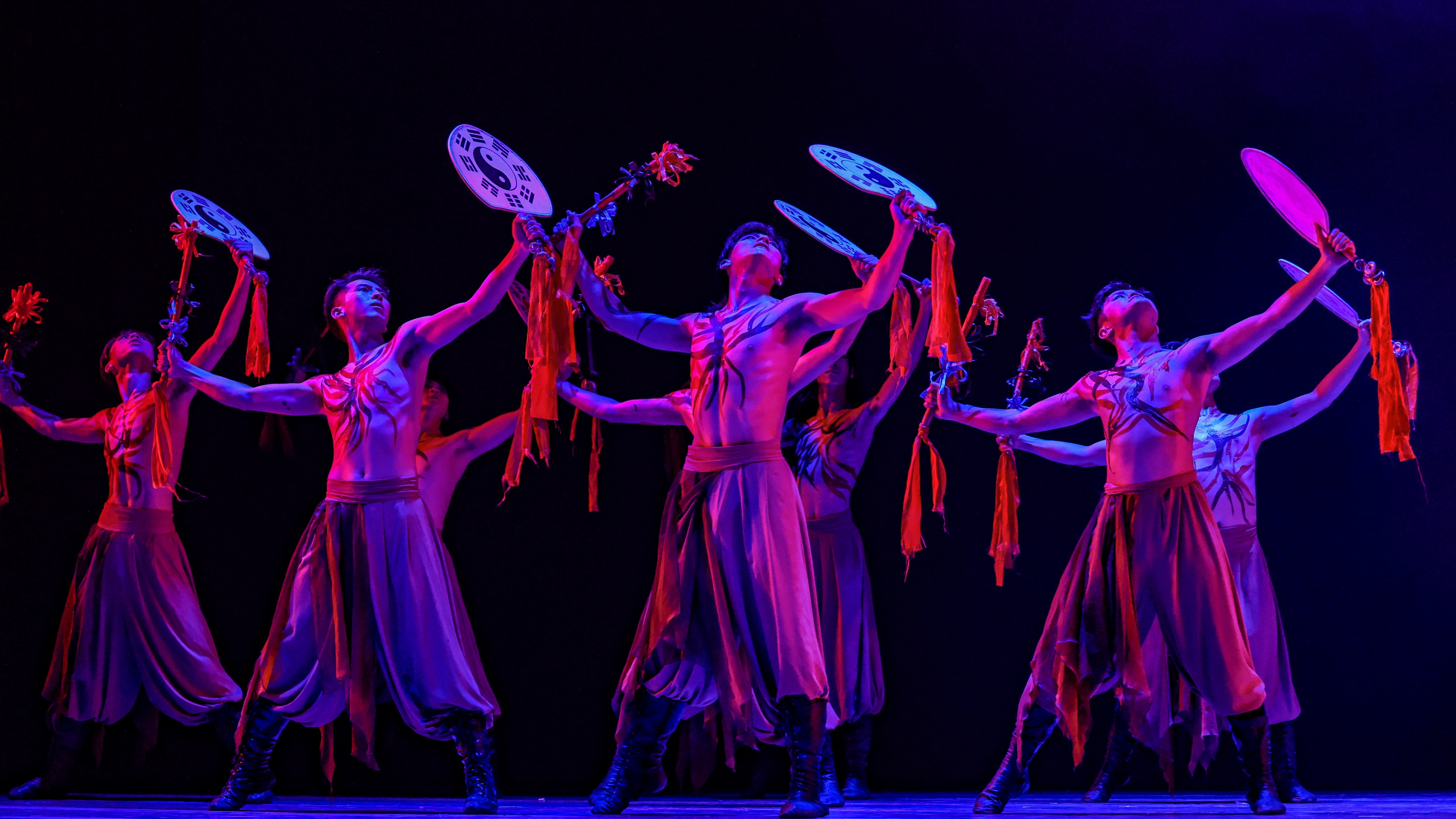 四时之冬—《点高山》:旋鼓舞是天水武山的民间文化艺术,展现原始生存状态中先民们驱狼时的豪迈彪悍与守卫家园的刚毅勇猛,是陇原儿女坚韧不拨的毅力与豪迈气概的象征。