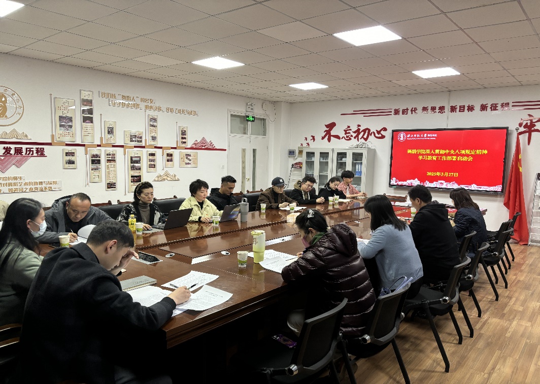 3月27日,公司召开深入贯彻中央八项规定精神学习教育工作部署启动会,研究部署学习教育工作。公司班子成员、党委委员、各党支部书记、教工党员、员工党员代表参加会议,公司党委副书记兼纪委书记杨俊萍主持会议。