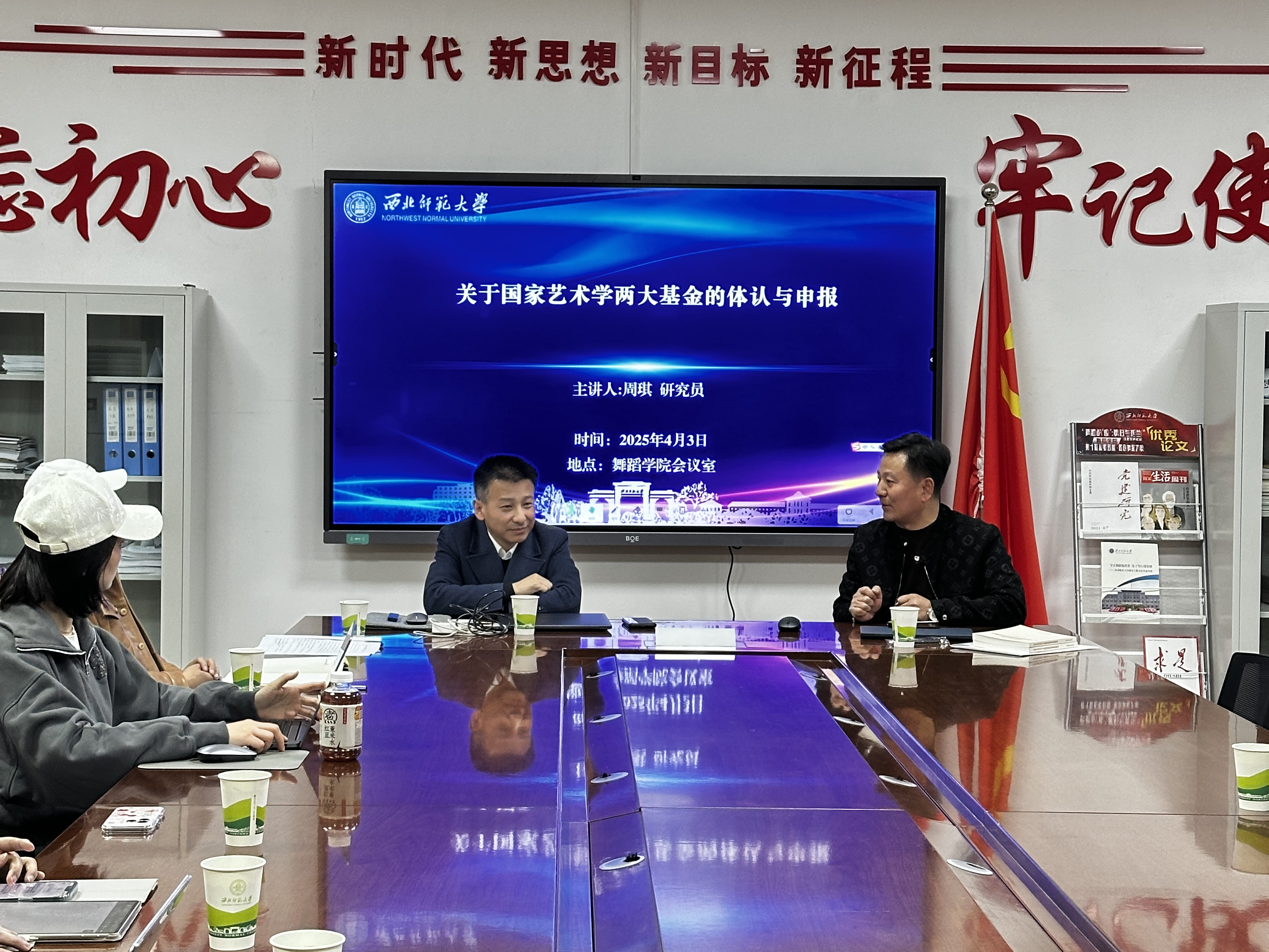 4月3日,应js33333金沙线路检测邀请,甘肃省歌剧公司党总支书记周琪作了“关于国家艺术学两大基金的体认与申报”讲座。公司全体教师参加学习。