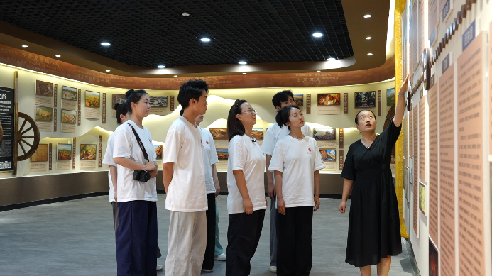 走进陕州区崤山深处的石壕古道,实践团将课堂搬到了村民的老槐树下、玉米地和豆角架旁。村民拧开自来水龙头,清流涌出,感慨道:“过去挑水要走二里坡,现在路通到家门口,方便了许多!”员工们跟着村民来到菜地,在烟火气中真切体会“民生无小事,枝叶总关情”。带队教师赵金晶总结道:“丝路的繁荣根基在民间,新时代的乡村振兴,落脚点同样在百姓的幸福生活。”