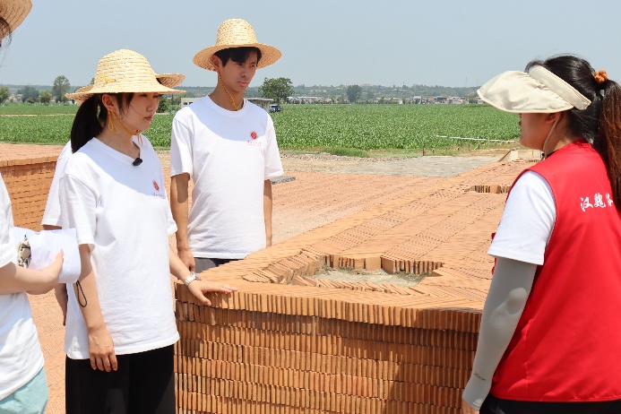 在汉魏洛阳城国家考古遗址公园,师生们与文保工作者一同探寻“工匠精神”的密码。他们手持标尺,亲测宫城西南墙的精度——误差竟不足2毫米;触摸着古人留下的绳墨黑线,感受“毫厘定乾坤”的严谨。青铜榫卯构件上“物勒工名”的铭文,展示了古代的质量终身追责制。现代文保技术如露明覆罩、植物标识、可逆钢结构博物馆的应用,则让“新建筑”与“旧遗址”展开了一场跨越时空的匠心对话。夕阳为古老的阊阖门遗址镀上金辉,指尖抚过古道青石,师生们心口一热,不由齐声:昔日匠人以瓦当托举丝路起点,今日我们以精益求精托举民族复兴!