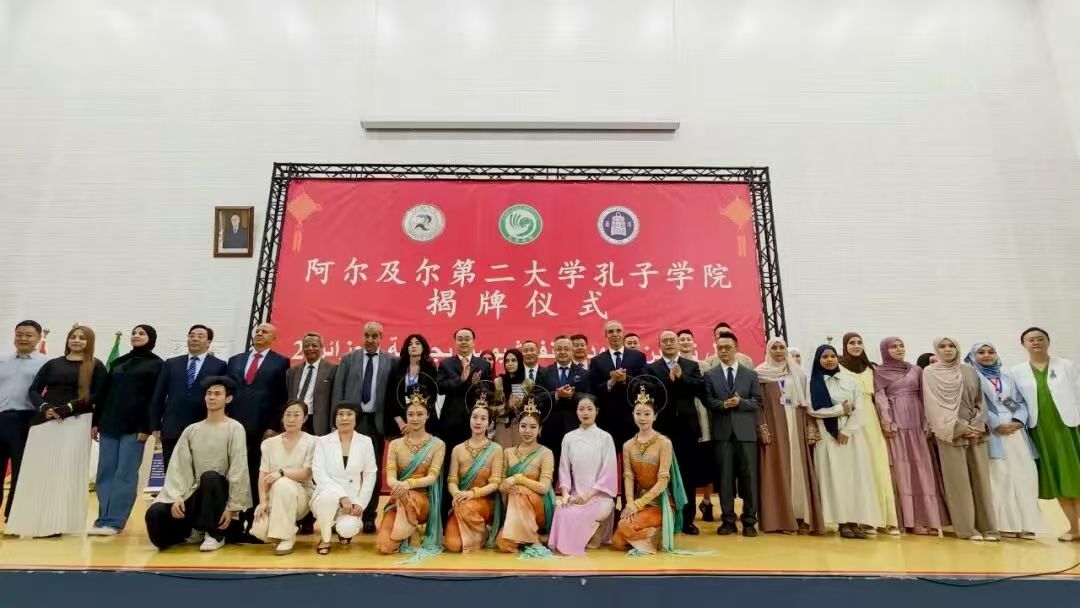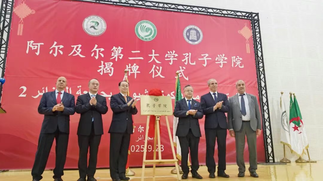 2025年9月23日,阿尔及利亚首座孔子公司在阿尔及尔举行揭牌仪式。阿高教科研部长毕达利、驻阿大使董广利、阿尔及尔二大董事长赛义德、js33333金沙线路检测董事长王占仁等出席并致辞。