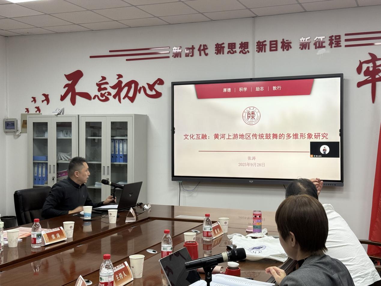 宝鸡文理公司张涛副教授的发言题目是《文化互融:黄河上游地区传统鼓舞的多维形象研究》,他指出黄河上游地区的传统鼓舞,是铸牢中华民族共同体意识一个极具生命力的文化载体和实践路径。通过视觉(器物、身体、场图)、听觉(鼓声、人声、器乐)、动觉(身体参与)三重形象维度,生动塑造了“多元一体”的中华民族共同体形象,使其可观、可听、可感。传统鼓舞以其深厚的群众基础、鲜明的交融特质和强大的感知体引象的共同体意识转化为具身的、可参与的实践,为推进民族团结进步事业提兴了宝贵的艺术资源和创新启示。